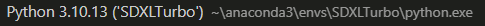 이렇게 하면 가상환경이 활성화 되면서 커맨드 창의 왼쪽에 (base) 가 (SDXLTurbo)로 바뀌었을 겁니다!
